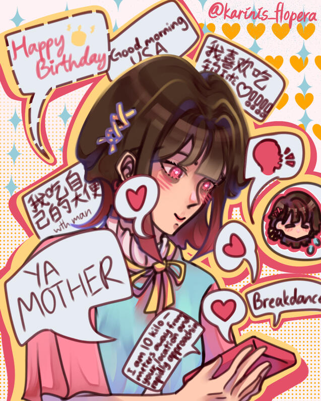 + Hobbies: Drawing, singing, writing, voice-acting, listening to music, gaming, role-playing, reading